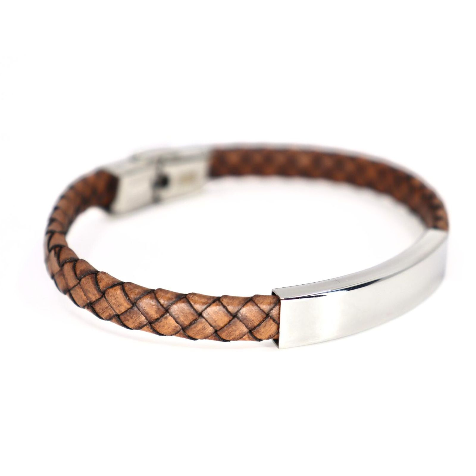 Această brățară bărbătească din piele maro împletită, cu plăcuță din oțel inoxidabil gravabilă, este combinația perfectă dintre stil casual, eleganță masculină și personalizare. Este ideală pentru purtare zilnică sau pentru a fi oferită în dar – fie că e vorba de un nume, o dată sau un mesaj cu semnificație personală.