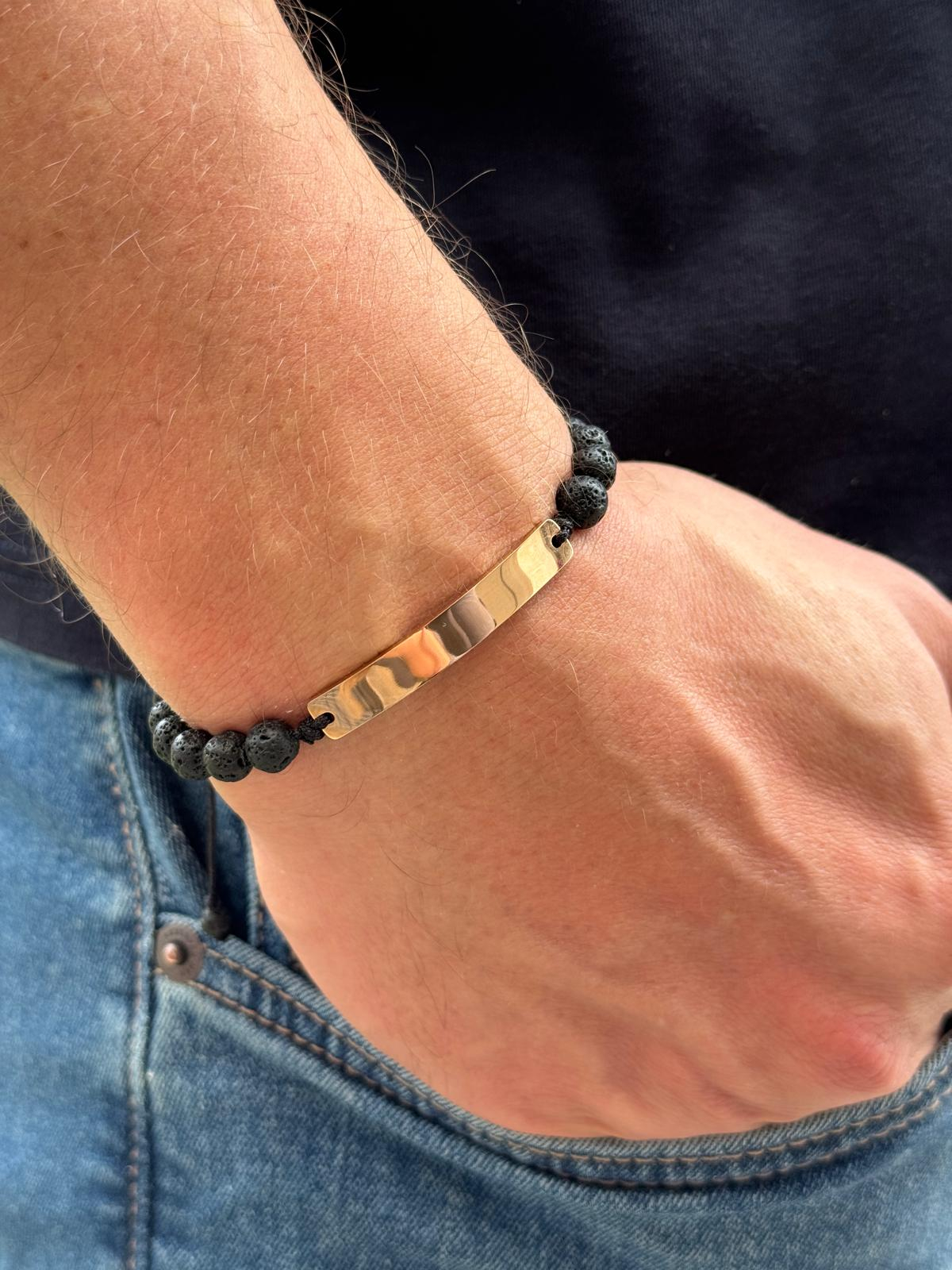 Puternică, expresivă și unică – această brățară bărbătească realizată manual cu pietre naturale de lavă vulcanică 6 mm, șnur reglabil și plăcuță gravabilă roz-aurie din oțel inoxidabil este alegerea ideală pentru un cadou cu semnificație sau un accesoriu care îți reflectă stilul personal. Lavă vulcanică simbolizează forța interioară și stabilitatea, iar gravura oferă o notă profund personală.