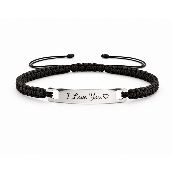 Simplitate, stil și personalizare – această brățară bărbătească realizată manual cu șnur negru împletit și plăcuță din oțel inoxidabil gravabilă este perfectă pentru bărbații care își doresc o brățară personalizată cu mesaj. Elegantă și ușor de purtat, se potrivește oricărui stil și oricărei ocazii.