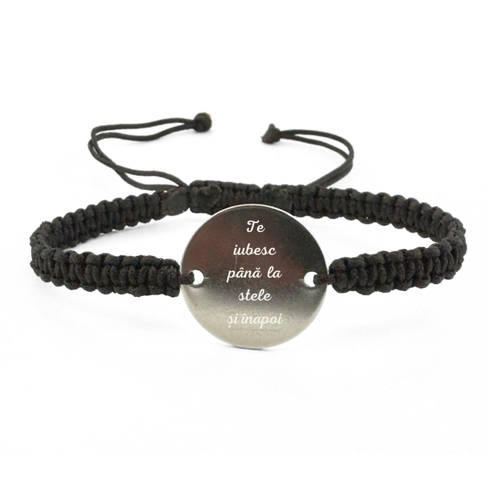 Un simbol discret al unui mesaj personal – această brățară cu șnur împletit și bănuț gravat din inox este creată pentru cei care apreciază p bijuterie cu semnificație. Personalizabilă față/verso cu textul dorit, este o alegere ideală pentru purtare zilnică sau pentru un cadou memorabil.