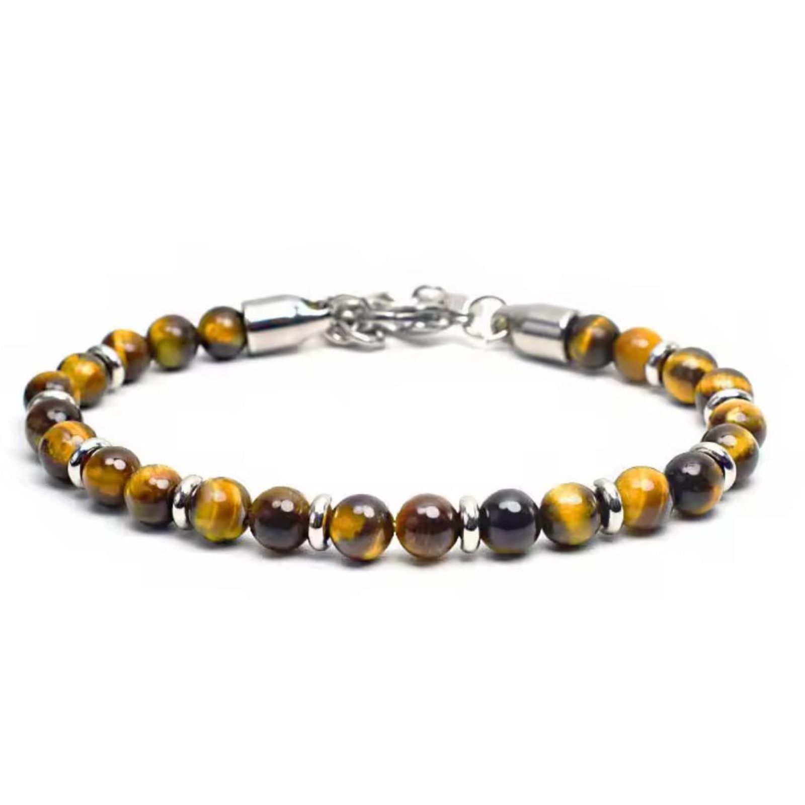 Comandă acum această brățară din inox pentru bărbați cu pietre ochi de tigru, cu design versatil și simbolism puternic!