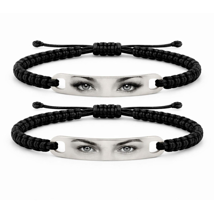 Set Brățări Personalizate cu Poză – Ochii Iubitei/Iubitului, Șnur Reglabil, Inox Gravură Laser