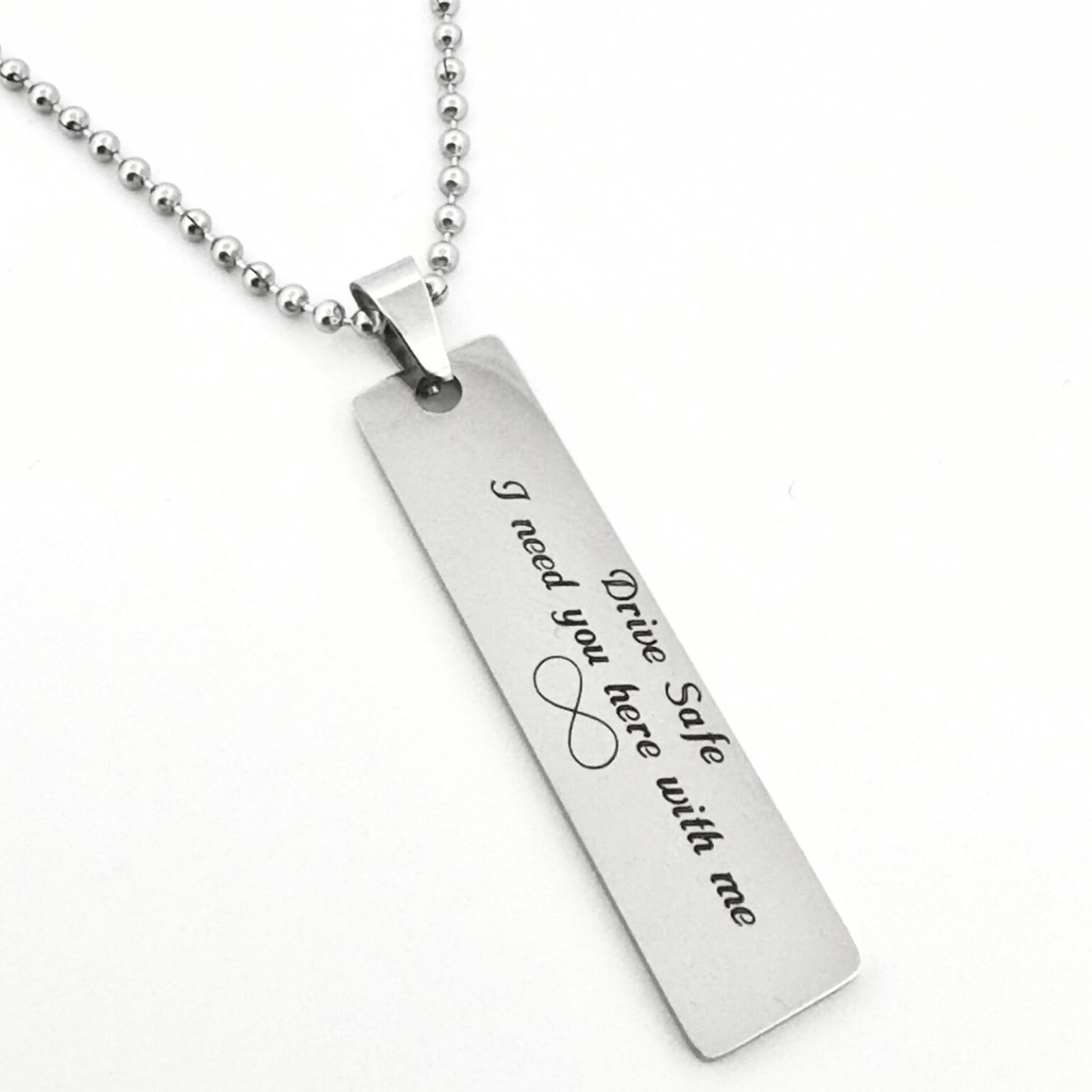 🔹 Pandantiv inox: 41 x 10 x 1,4 mm – spațiu ideal pentru gravare text.
